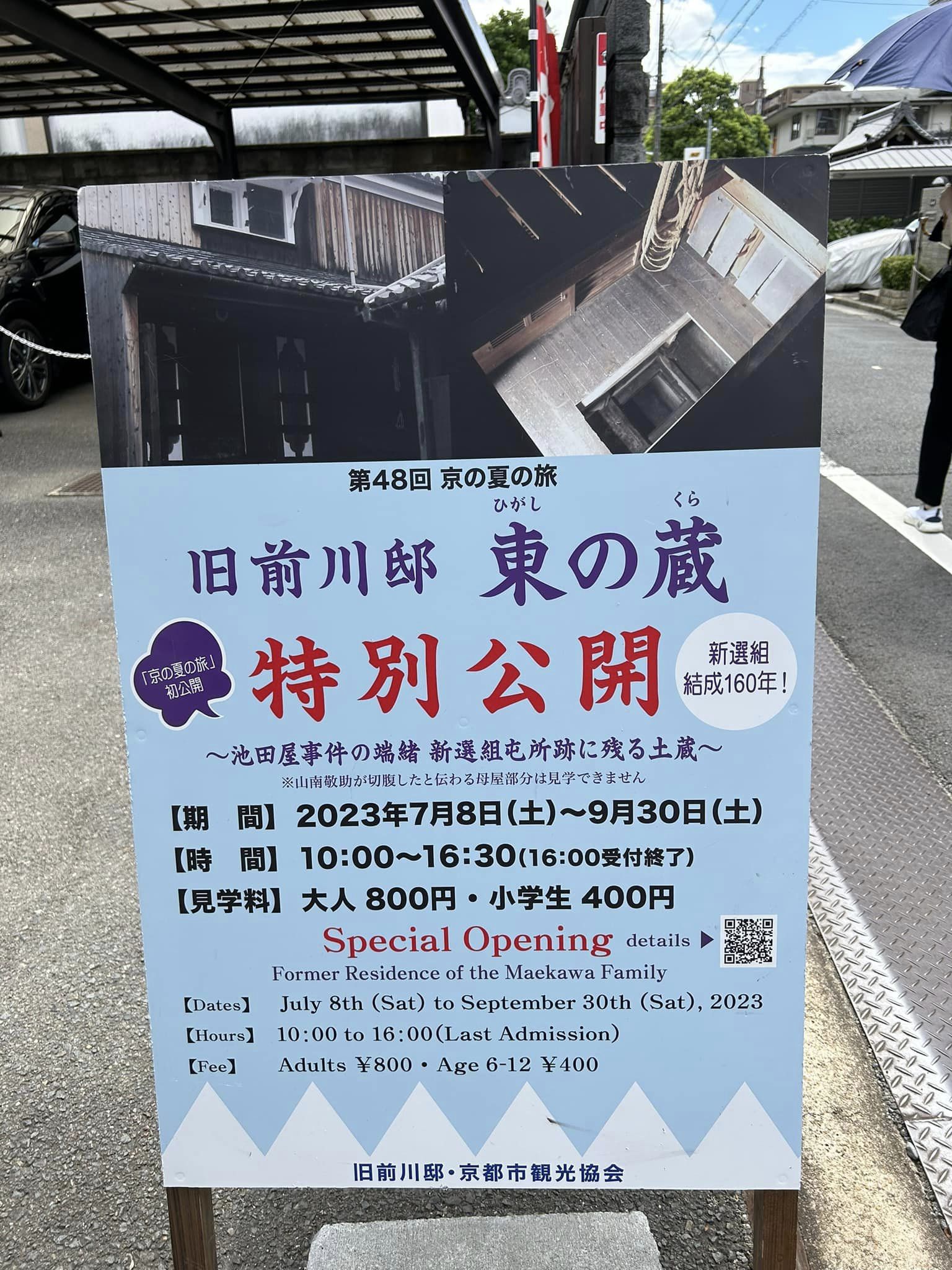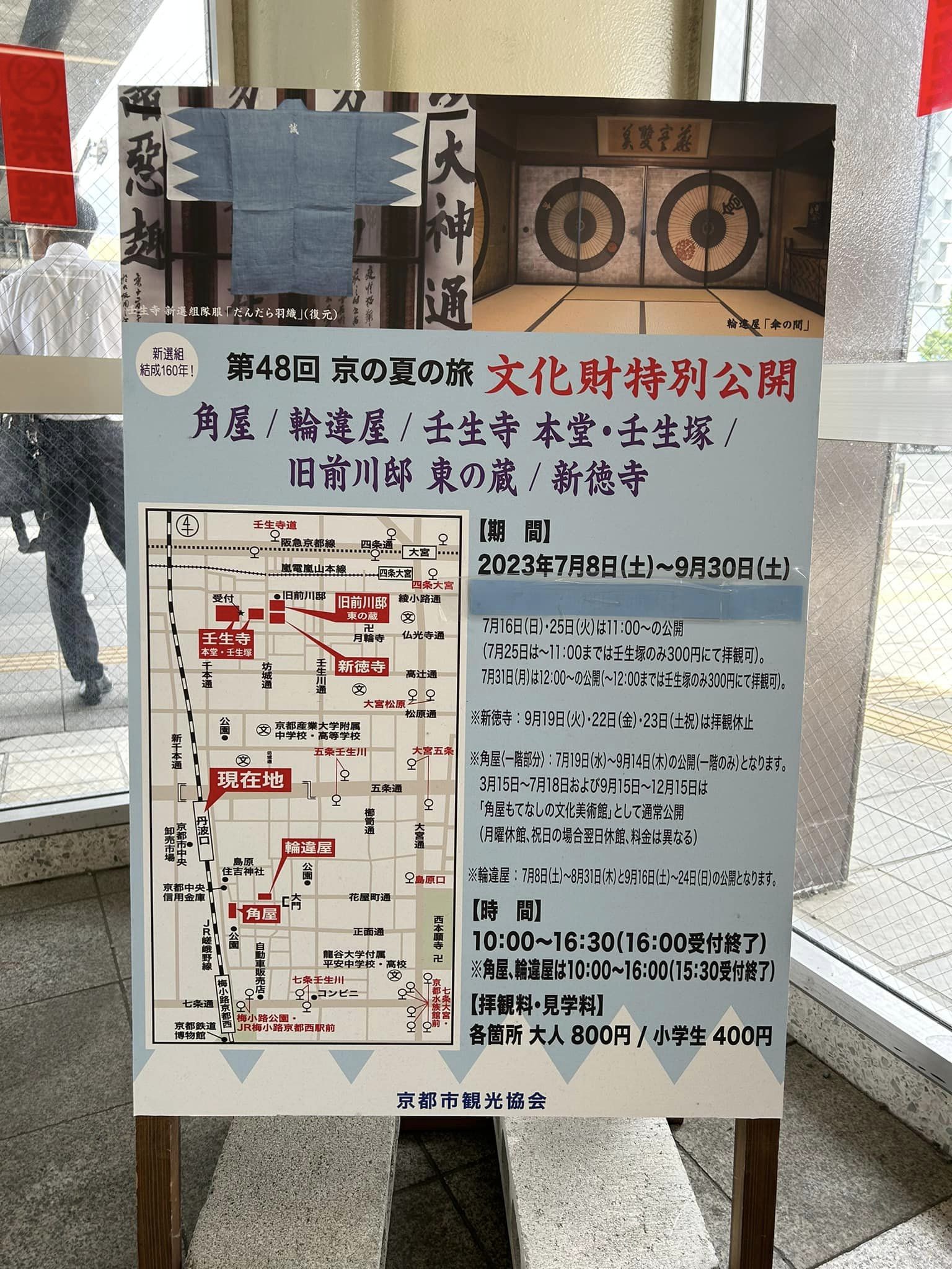 いろいろな関連史跡を回っておりますが、ずーーーっと基本的には非公開だった、最初の屯所の一つ、旧前川邸(現在は別のお名前の方の個人宅)が、新選組結成160年記念ということで「京の夏の旅」企画で今夏限定で公開されております。