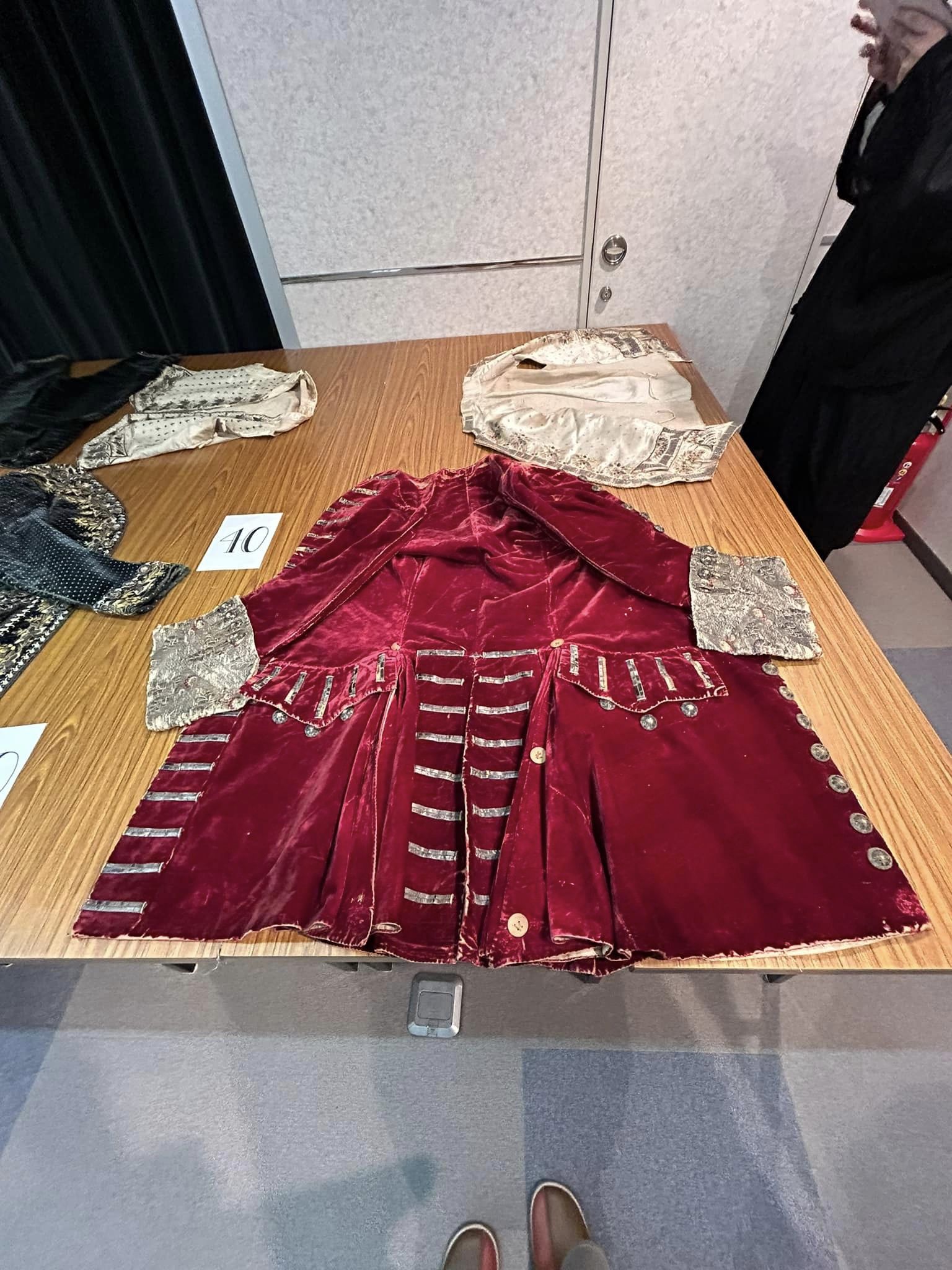 長谷川さん個人蔵の18世紀から20世紀初頭までのドレスや宮廷服、軍服等の衣服がそのまま、または、縫い合わせる前のパーツにバラバラに分解されて展示されています。